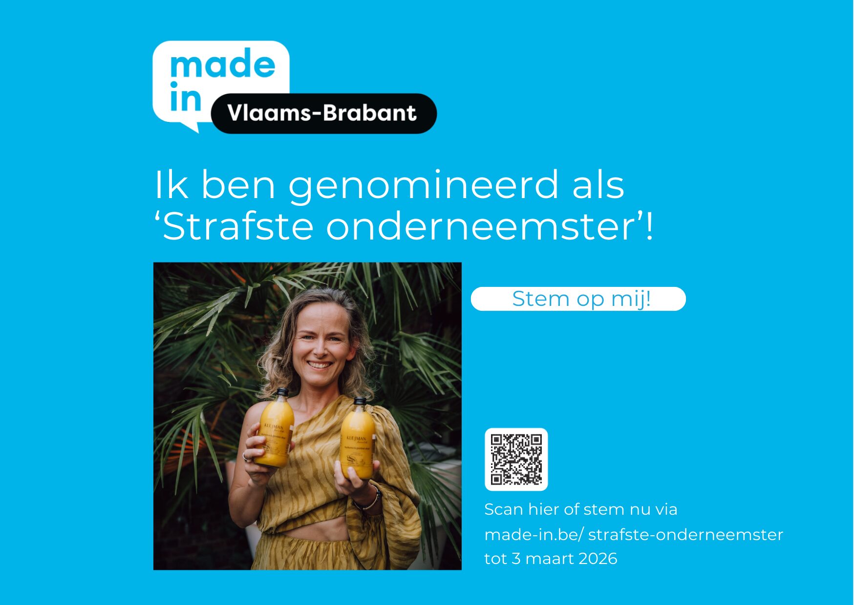 Met veel dankbaarheid delen we graag bijzonder nieuws: Marta Klejman, oprichtster van Klejman Fermentista, is genomineerd als top 5-finaliste voor de titel Strafste Onderneemster van Vlaams-Brabant 2026. Deze erkenning voelt als een bevestiging van een traject dat niet begon met een businessplan, maar met gezondheid. Breng hier je stem uit Van keuken tot fermentatieatelier Marta […]