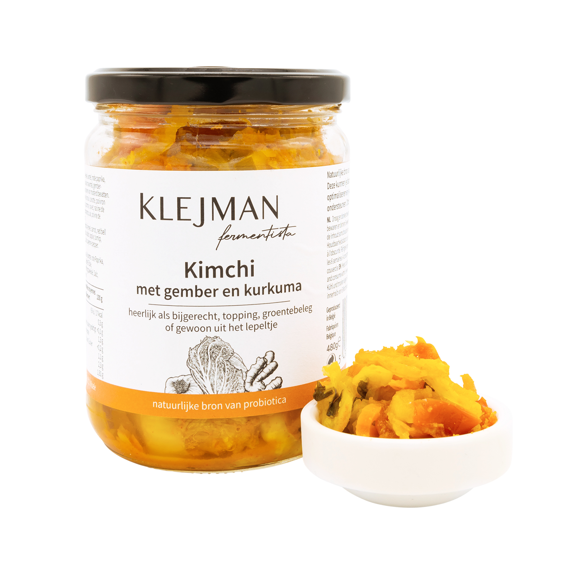 Ingrediƫnten: Chinese kool, koolrabi, venkel, wortel, rode paprika, spitskool, paksoi, daikon, rammenas, appel, raap, kurkumawortel, gemberwortel, knoflook, lente ui, zout, cayennepeper.